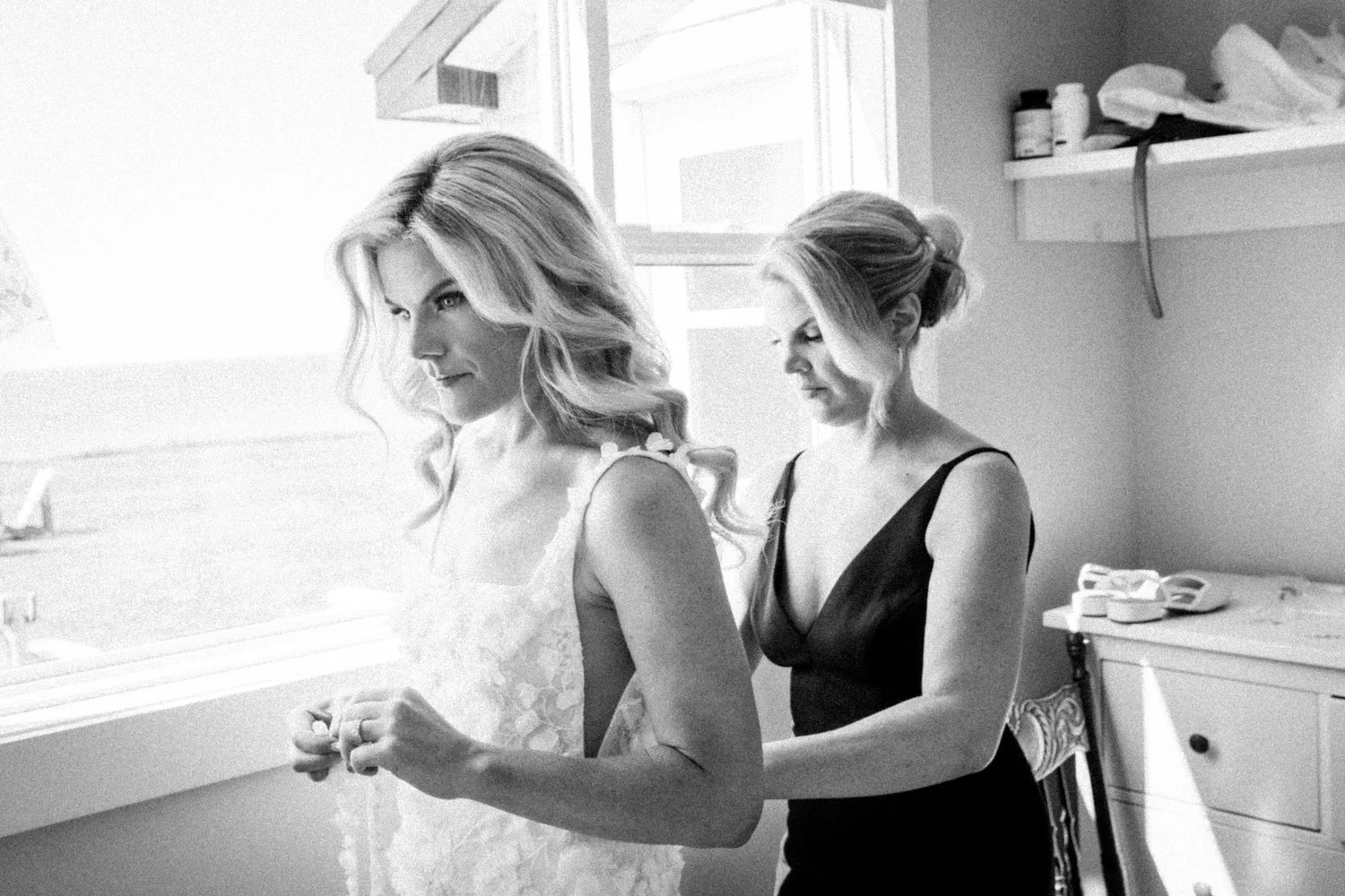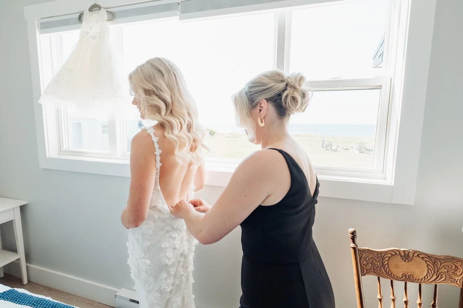 My work has taken me through the Greater Ottawa and Greater Toronto areas, where I spent years refining my craft across a wide range of bridal settings and styles. I have since returned home to Nova Scotia, where I now live with my husband, our two boys, and our dog. Being rooted here—surrounded by family, familiarity, and a slower rhythm—has shaped the way I work today: thoughtfully, intentionally, and with deep respect for the significance of each wedding morning
